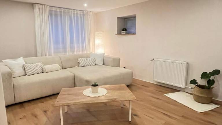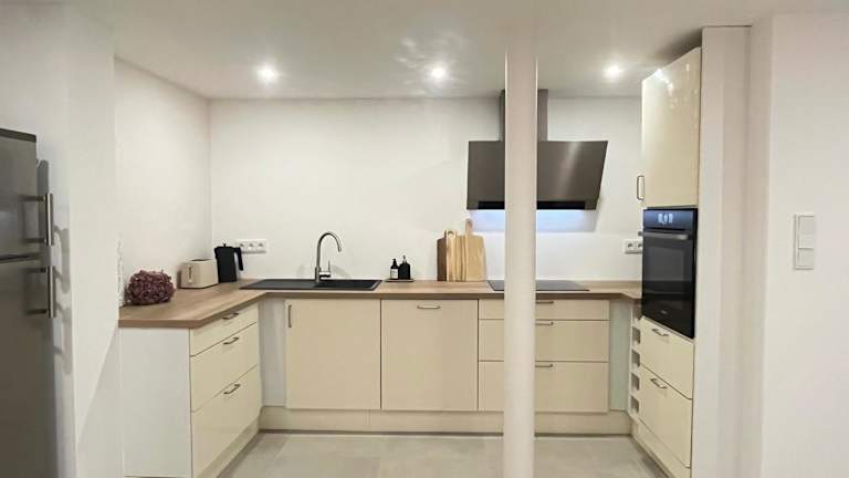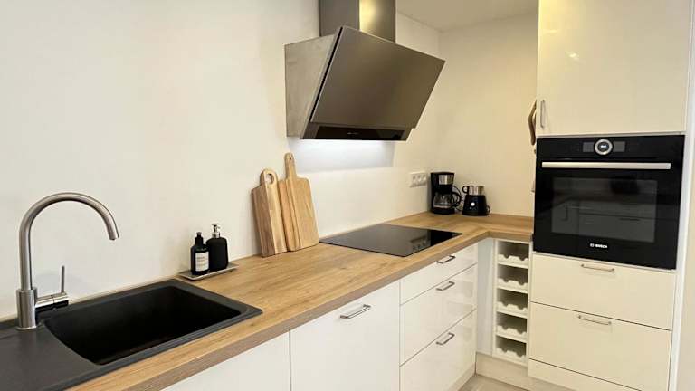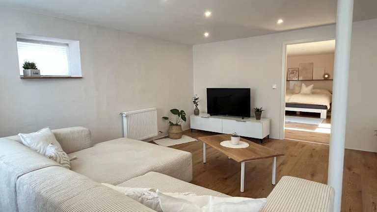 Die Ferienwohnung ist mit einem Schlafzimmer ausgestattet und verfügt über eine Küche mit Kühlschrank und Geschirrspüler, einen Flachbild-TV, einen Sitzbereich sowie ein Badezimmer mit Dusche. Handtücher und Bettwäsche sind in der Unterkunft vorhanden.