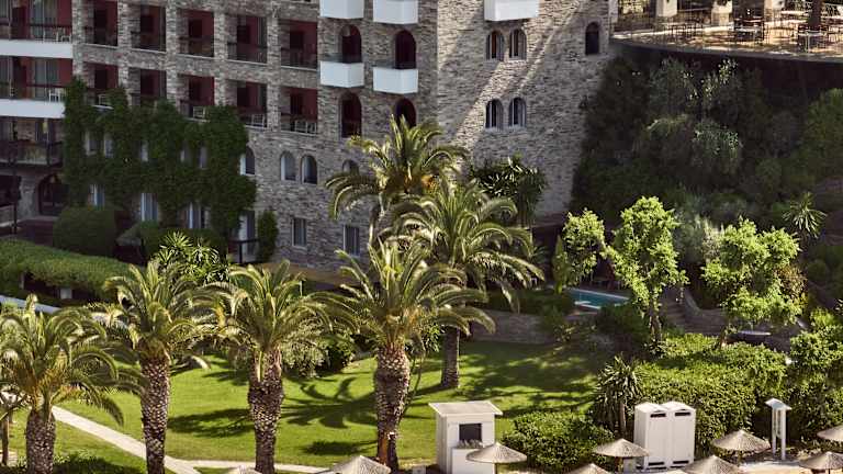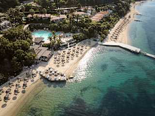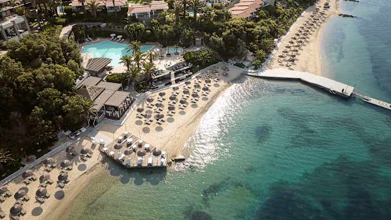 Das Eagles Palace ist ein familiengeführtes 5-Sterne-Strandresort in Chalkidiki, Griechenland, und Mitglied von Small Luxury Hotels of the World. Das Resort liegt direkt an einem mit der Blauen Flagge ausgezeichneten Sandstrand, eingebettet in mediterrane Gärten. Insgesamt stehen 152 Zimmer, Suiten und Bungalows zur Verfügung, viele davon mit Meerblick, teilweise mit direktem Strandzugang oder privatem Pool. Zu den Einrichtungen gehören ein Spa, ein Yacht Club, mehrere Restaurants und Bars, ein Fitnessbereich sowie ein Wassersport- und Tauchzentrum. Für Familien bietet das Hotel einen betreuten Kids Club und passende Unterkunftsoptionen. Ein besonderes Highlight ist der Zugang zur unbewohnten Insel Drenia mit organisiertem Strandbereich inklusive Sonnenliegen und Sonnenschirmen. In der Gastronomie werden überwiegend frische, lokale Zutaten verwendet. Mit über 100 Jahren Erfahrung in der Hotellerie bietet das Eagles Palace eine Kombination aus ruhiger Lage, direktem Strandzugang und umfassendem Serviceangebot.