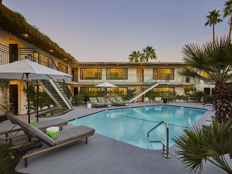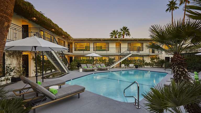 Das Descanso Resort, A Men's Resort, befindet sich im Stadtteil Uptown in Palm Springs. Es liegt etwa 1,2 km vom Zentrum entfernt und bietet eine ruhige und dennoch zentrale Lage. In der Umgebung gibt es viele Freizeitaktivitäten wie Wandern und Radfahren, die Sie erkunden können. Die Innenstadt von Palm Springs, mit ihren zahlreichen Geschäften, Restaurants und Unterhaltungsmöglichkeiten, ist nur 2,5 km entfernt. Das luxuriöse Einkaufsviertel El Paseo ist ebenfalls gut erreichbar und liegt nur 1,8 km entfernt. Der internationale Flughafen Palm Springs ist nur 4 km vom Hotel entfernt.