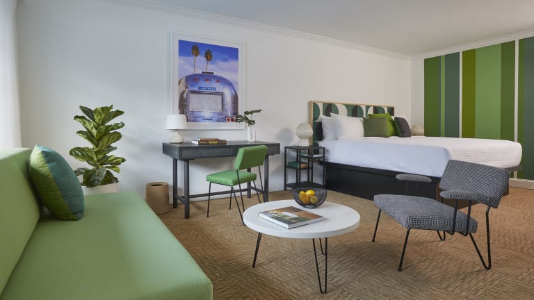 Das Descanso Resort, A Men's Resort, ist ein modernes und stilvolles Hotel im Stadtteil Uptown in Palm Springs. Mit kostenfreiem WLAN und Privatparkplätzen bietet es seinen Gästen einen komfortablen Aufenthalt. Die Zimmer sind geräumig und gut ausgestattet, darunter auch eine Deluxe Suite mit Balkon und Whirlpool-Badewanne. Genießen Sie den Blick auf die Berge oder den Pool, während Sie eine Tasse Kaffee in Ihrem Zimmer genießen. Das Resort bietet auch eine Gemeinschaftslounge, in der Sie entspannen können. Die Lage des Hotels ist ideal für Aktivitäten wie Wandern und Radfahren in der Umgebung von Palm Springs. Die Innenstadt mit ihren Geschäften und Restaurants ist nur wenige Kilometer entfernt und das luxuriöse Einkaufsviertel El Paseo ist ebenfalls gut erreichbar. Der internationale Flughafen Palm Springs ist ebenfalls in der Nähe.