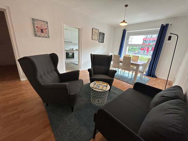 Die Ferienwohnung besteht aus drei Schlafzimmern, einem Wohnzimmer und einer voll ausgestatteten Küche, die mit einem Kühlschrank und einer Kaffeemaschine ausgestattet ist. Zudem steht ein Badezimmer mit Badewanne oder Dusche und Haartrockner zur Verfügung. Handtücher und Bettwäsche werden bereitgestellt.