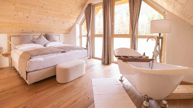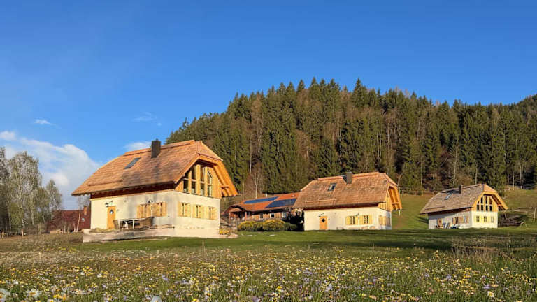 Ebner 1822 ist ein exklusiver Rückzugsort für Ruhesuchende und Naturliebhaber im Herzen Kärntens. Drei handgefertigte Ferienhäuser aus Holz, Stroh und Lehm verbinden traditionelle Baukunst mit zeitgemäßem Komfort und einer gesunden, diffusionsoffenen Wohnatmosphäre. Umgeben von Wiesen, Bergen und einem Naturteich genießen Gäste absolute Ruhe, Privatsphäre und einen weiten Blick in die Landschaft. Die hochwertig ausgestatteten Häuser verfügen über stilvolle Küchen, gemütliche Wohnbereiche mit Kaminofen, freistehende Badewannen sowie private Wellness-Highlights. Kostenloses WLAN und kostenfreie Parkplätze stehen ebenso zur Verfügung wie Mineralwasser, Fruchtsäfte, Nespresso-Kaffee und eine feine Auswahl an Bio-Tees. Ein liebevoll zusammengestellter Frühstückskorb mit regionalen Bio-Produkten rundet den Aufenthalt ab. Ebner 1822 steht für nachhaltigen Luxus, Entschleunigung und echte Erholung – ideal für Paare, die Natur, Qualität und Stille schätzen.