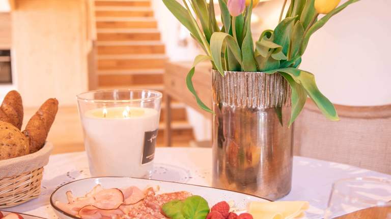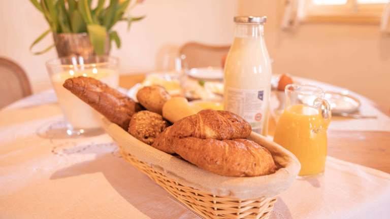 Für unsere Gäste der Ferienhäuser steht ein Frühstückskorb mit regionalen Bio-Produkten zur Verfügung. Dieser wird individuell zusammengestellt und kann täglich in Anspruch genommen werden. Getränke wie Mineralwasser, Fruchtsäfte, Nespresso-Kaffee und Bio-Tees sind in den Häusern vorhanden. Zur Unterkunft Ebner 1822 gehört eine Dorfschenke mit Schwerpunkt auf biologischer, regionaler Küche. Es werden tägliche Empfehlungen aus der Dorfschenke angeboten, die von Barbara zubereitet werden. D
