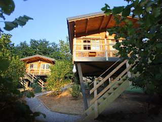 Die Ecolodge Langhe bietet ein einzigartiges Übernachtungserlebnis in erhöhten Holzhäusern im Wald. Die Zimmer sind gemütlich eingerichtet und verfügen über Deckenventilatoren, um an warmen Tagen für angenehme Temperaturen zu sorgen. Jedes Zimmer verfügt über ein eigenes Badezimmer, in dem Sie sich entspannen können. Die Unterkunft wird komplett mit erneuerbarer Energie betrieben, dank der Sonnenkollektoren auf den Dächern der Lodge.
