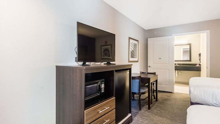 Die Zimmer sind mit Klimaanlage, einem Schreibtisch, einem Kühlschrank, einer Mikrowelle sowie einer Tee-/Kaffeemaschine ausgestattet. Zudem verfügen die Zimmer über Kommunikations- und Unterhaltungsmöglichkeiten wie ein Telefon, einen Flachbildschirmfernseher und WLAN. In den Badezimmern steht ein Haartrockner zur Verfügung, und die Gäste können Kosmetikartikel nutzen. Es sind auch rollstuhlgerechte Zimmer mit barrierefreiem Badezimmer erhältlich.