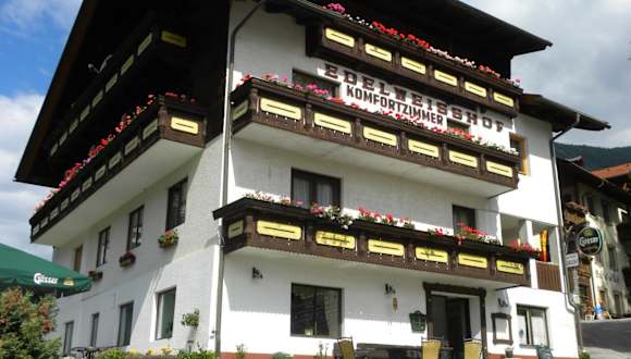 Im Edelweisshof erwarten Sie komfortable Zimmer und eine gemütliche Atmosphäre. Morgens können Sie sich am reichhaltigen Frühstücksbuffet stärken und bei schönem Wetter Ihr Frühstück auf der Terrasse genießen. Am Nachmittag werden Kaffee und Kuchen serviert und am Abend können Sie den Tag an der Bar mit einem Getränk und einer Partie Darts ausklingen lassen. Der Garten bietet einen Panoramablick auf die umliegenden Berge und verfügt über einen Kinderspielplatz und eine Asphaltbahn zum Sommercurling. Für zusätzliche Unterhaltung stehen Ihnen ein Spielezimmer, ein Billardtisch und ein virtueller Nike+Kinect Trainer zur Verfügung.