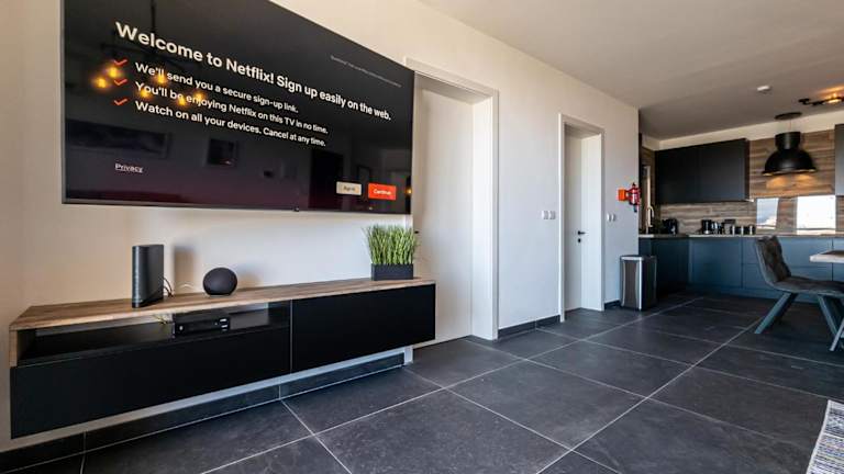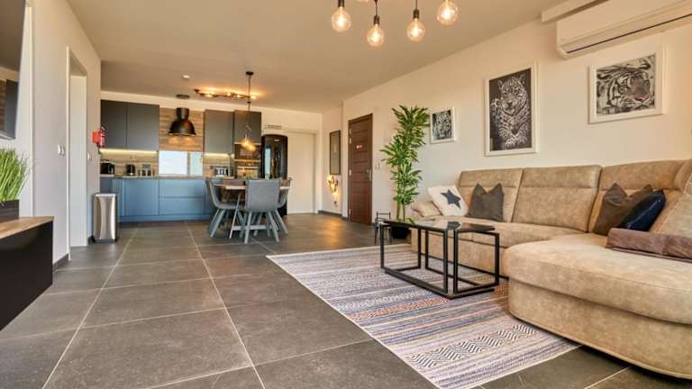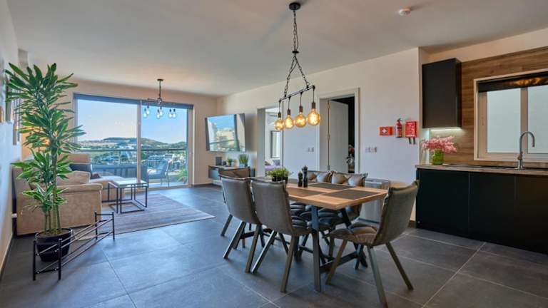 Die Ferienwohnung besteht aus 2 Schlafzimmern, einem Wohnzimmer, einer voll ausgestatteten Küche mit Kühlschrank und Kaffeemaschine sowie 2 Badezimmern mit Dusche und kostenlosen Pflegeprodukten. Handtücher und Bettwäsche werden bereitgestellt.