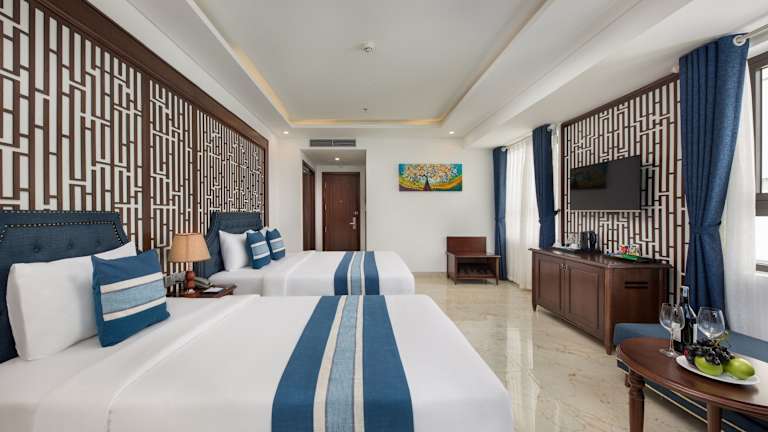 Das Eden Hotel Da Nang bietet seinen Gästen eine ideale Lage nur wenige Schritte vom Strand My Khe entfernt. Mit einem Restaurant, einem Fitnesscenter und einem Innenpool bietet das Hotel alles, was Sie für einen entspannten Aufenthalt benötigen. Genießen Sie den Komfort der 24-Stunden-Rezeption, des Zimmerservices und des Geldwechsels. Das kontinentale Frühstücksbuffet sorgt für einen guten Start in den Tag. Das Hotel verfügt auch über ein Businesscenter und einen Bankautomaten. Der Flughafen Da Nang ist nur 6 km entfernt und ein kostenpflichtiger Flughafentransfer steht zur Verfügung.