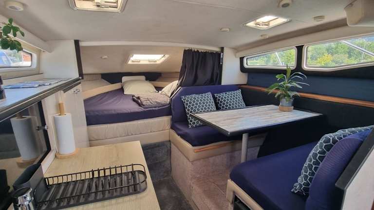 Die Unterkünfte im Hotel Eden marine sind Boote, die auf einem privaten Ponton liegen. Jedes Boot verfügt über kostenfreies WLAN und Warmwasser. Auf der Terrasse des Bootes können Sie den Blick auf den Hafen und die umliegende Landschaft genießen. Im gemütlichen Sitzbereich können Sie sich entspannen und den Aufenthalt auf dem Wasser in vollen Zügen genießen.