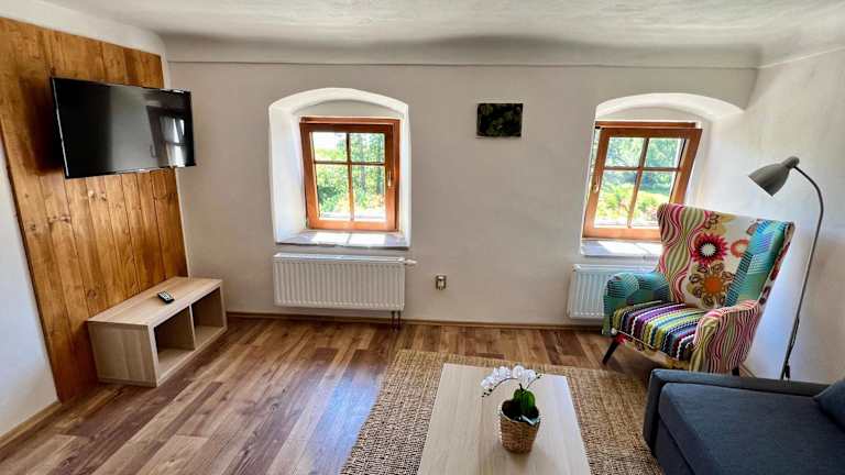 Horní Planá in der Region Südböhmen. Die Unterkunft liegt in der Nähe des Schlosses Krumau, das 24 km entfernt ist, und des Stausees Lipno, der 22 km entfernt ist. Der Flughafen Budweis ist der nächstgelegene Flughafen und liegt 47 km entfernt.