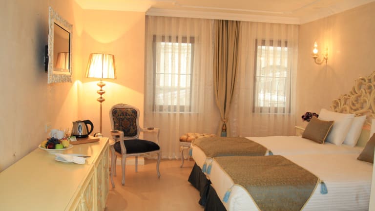 Das Edibe Sultan Hotel verfügt über insgesamt 32 geräumige Zimmer im osmanischen Stil. Jedes Zimmer ist elegant eingerichtet und bietet Annehmlichkeiten wie eine Minibar, kostenfreies Kaffee- und Teezubehör, einen Flachbild-TV und einen Laptop-Safe. Die klimatisierten Zimmer bieten auch einen Balkon, auf dem Sie die frische Luft und die Aussicht auf die Umgebung genießen können.