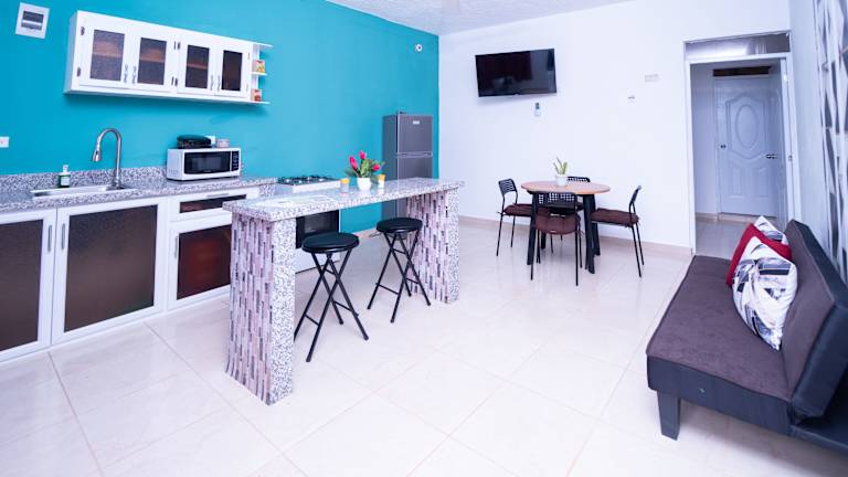 Das EDMA APARTAHOTEL liegt in Santa Bárbara de Samaná und bietet eine zentrale Lage, von der aus Sie bequem die umliegenden Sehenswürdigkeiten und Attraktionen erkunden können. Der Strand Cayacoa ist nur 2,9 km entfernt und das charmante Pueblo de los Pescadores erreichen Sie nach einer kurzen Fahrt von 38 km. Der internationale Flughafen El Catey liegt in einer Entfernung von 48 km und ist mit einem kostenpflichtigen Flughafentransfer leicht zu erreichen.