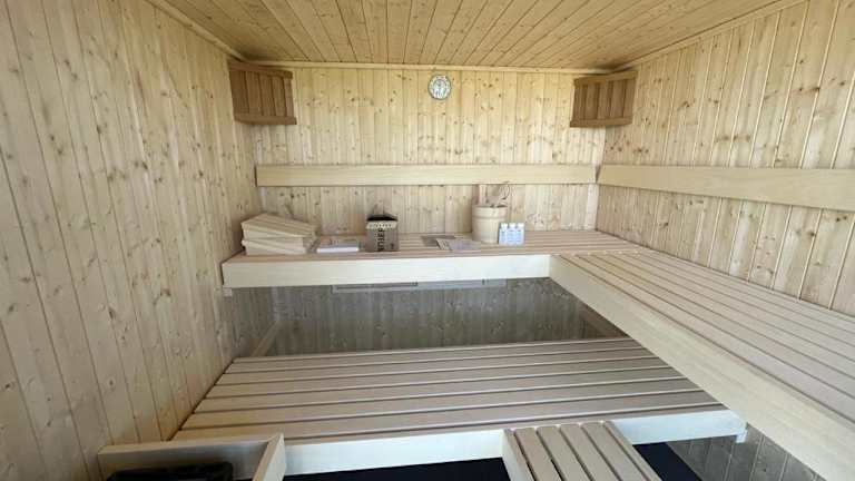 Die Unterkunft bietet Zugang zu einer Sauna und verfügt über Grillmöglichkeiten und eine Terrasse mit Gartenblick. Es gibt einen Garten und Sonnenliegen sowie Sonnenstühle.