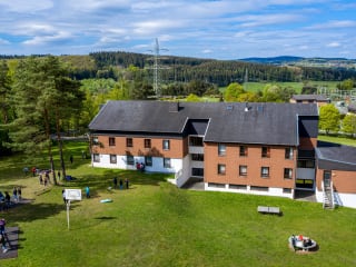 - Leiterzimmer für die 1- und 2-Bettbelegung mit Dusche/WC. - Eingangsbereich mit Rezeption, Bistro, Café-Bar, Snackbereich, Restaurant, Besprechungszimmer, Kinderspielzimmer. - 5 Aufenthalts- und Veranstaltungsräume unterschiedlicher Größe für bis zu 100 Personen. - Freizeitprogramme für den spannenden Familienurlaub. - Erlebnisprogramme für erlebnisreiche Klassenfahrten. - Pädagogisch wertvolle Erlebnisprogramme für Gruppen zur Teambildung. - Ausstattung für Veranstaltungen, Tagungen, Workshops, Projekttage und Musikfreizeiten: Beamer, Leinwand, Pinnwand, Flipchart, Rednerpult, Tafel, Moderationsmaterial, Fernseher, DVD-Player, Musikanlage mit CD-Player, Klavier. - Kostenfreies WLAN im ganzen Haus. - Barrierefreie Ausstattung des Hauses.