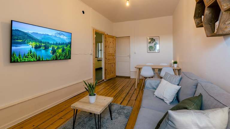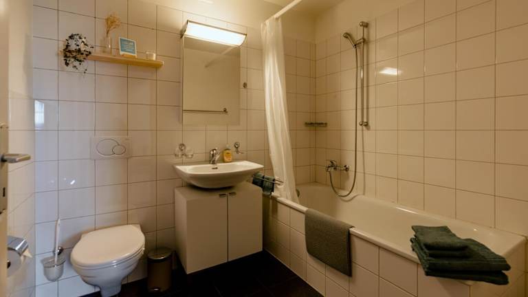 Die Wohnung besteht aus einem Schlafzimmer, einem Wohnzimmer, einem Kabel Flachbild-TV, einer gut ausgestatteten Küche sowie einem Badezimmer mit Dusche und Badewanne. Handtücher und Bettwäsche werden bereitgestellt.