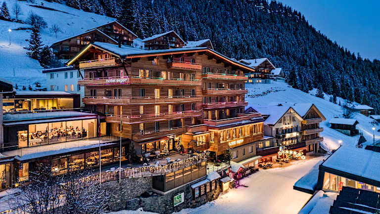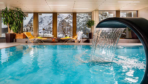Einziges Hotel in Mürren mit eigenem Hallenbad, Sprudelbad, Sauna und Solarium. Im Winter endet Ihr Skitag vor unserem Skiraum und im Sommer starten die Wanderwege direkt von unserem Hotel