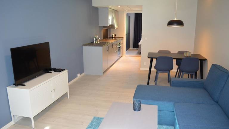 Die Einemo Apartments in Lærdalsøyri sind die ideale Wahl für Reisende, die in der Region Sogn og Fjordane nach einer komfortablen Unterkunft suchen. Mit kostenfreiem WLAN und Privatparkplätzen bieten diese Apartments alles, was Sie für einen angenehmen Aufenthalt benötigen. Die Zimmer sind mit modernen Annehmlichkeiten ausgestattet, darunter ein eigenes Bad, ein Flachbild-TV, eine voll ausgestattete Küche und ein Balkon. Die Umgebung lädt zu Aktivitäten wie Radfahren ein und Sehenswürdigkeiten wie die Stabkirche Borgund und der Aussichtspunkt Stegastein sind nur eine kurze Autofahrt entfernt. Der Flughafen Sogndal ist ebenfalls gut erreichbar.