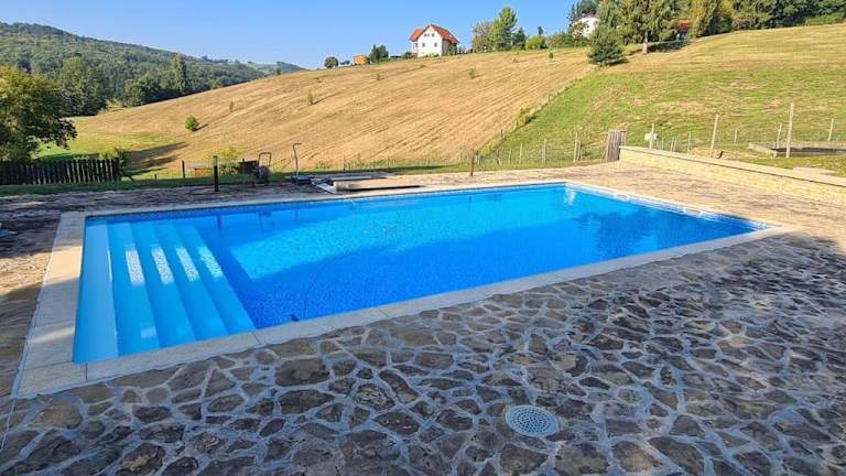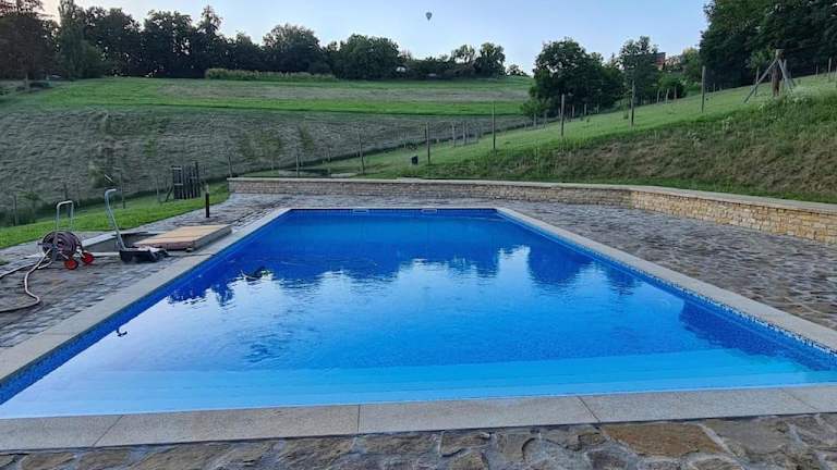 Die Gäste haben Zugriff auf einen Außenpool, können sich im Garten entspannen sowie Aktivitäten wie Wandern und Fahrradfahren nachgehen.