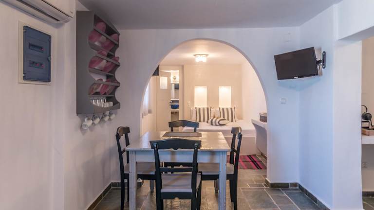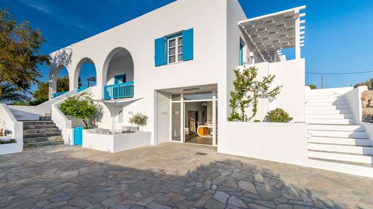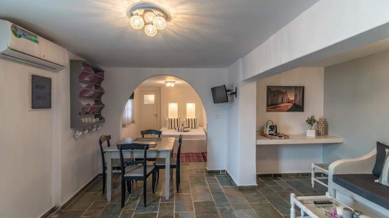 Die Eiriana Luxury Suites befinden sich in idealer Lage, nur 150 m vom Zentrum des Dorfes Trypiti entfernt. Das Dorf bietet eine charmante Atmosphäre und die Möglichkeit, die lokale Kultur und das traditionelle Leben der Insel zu erleben. Der Strand Triades ist nur 9 km entfernt und lädt zu entspannten Stunden am Meer ein. Das Kloster Panagia Tourliani, das nur 700 m entfernt liegt, ist ein weiteres Highlight, das Sie besuchen sollten. In der Nähe der Unterkunft finden Sie auch die traditionellen Windmühlen, die ein Symbol für die Kykladen sind.