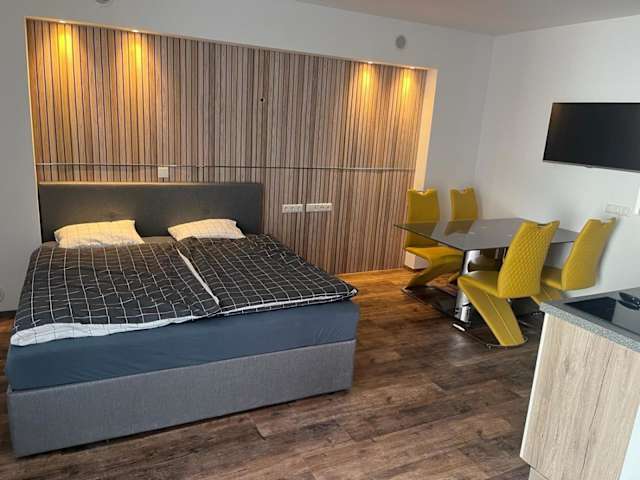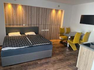 Die Ferienwohnung umfasst ein Schlafzimmer, ein Wohnzimmer sowie eine voll ausgestattete Küchenzeile mit Kühlschrank und Kaffeemaschine. Zudem verfügt die Unterkunft über ein Badezimmer mit Dusche und Haartrockner. Handtücher und Bettwäsche werden bereitgestellt.