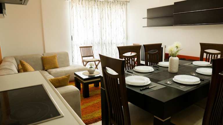 Eka Luxury Two-Bedroom Penthouse bietet eine Unterkunft mit Stadtblick, einer Terrasse und einem Balkon, ideal für einen entspannten Aufenthalt. Die Ferienwohnung ist klimatisiert und umfasst zwei Schlafzimmer, ein Wohnzimmer sowie eine voll ausgestattete Küche.