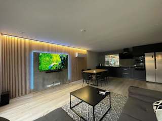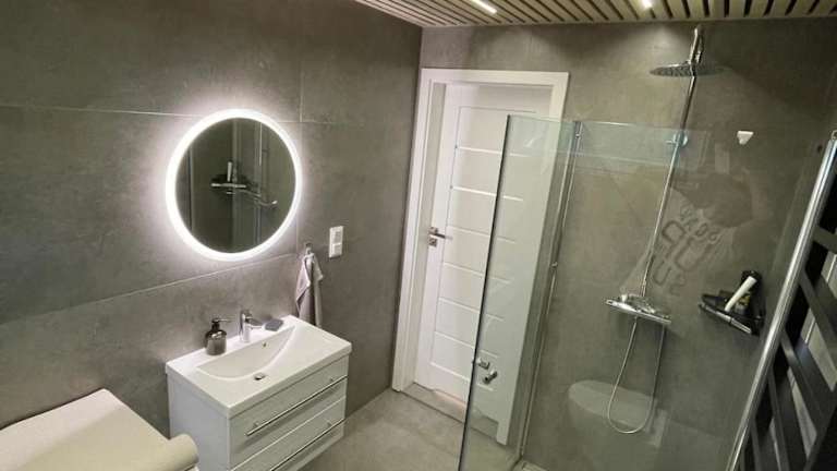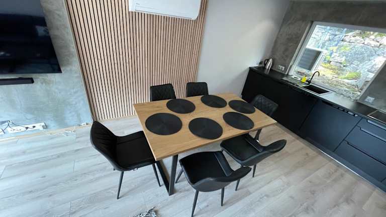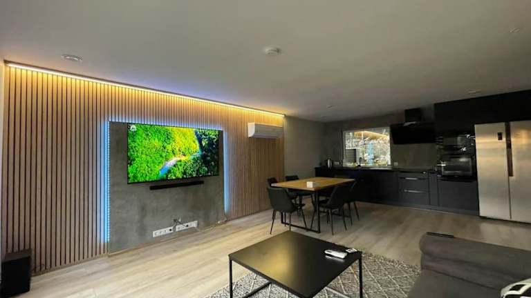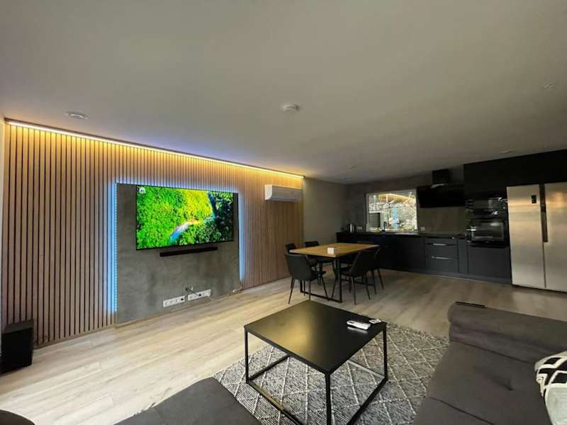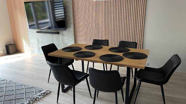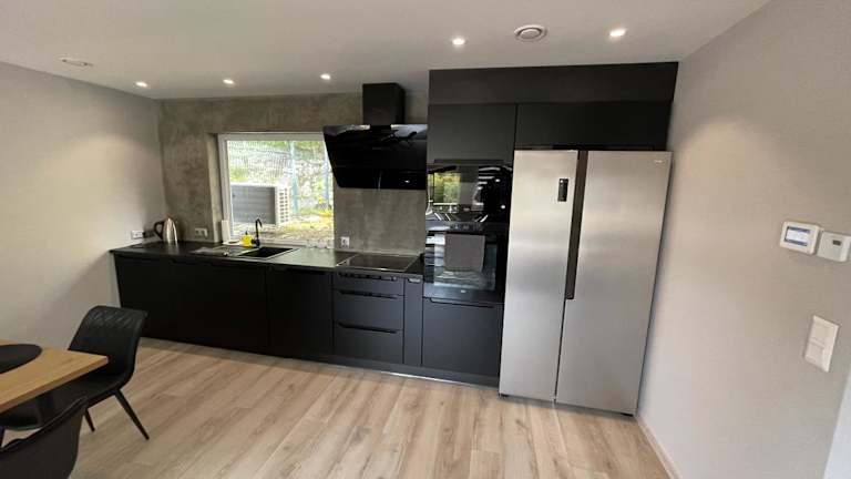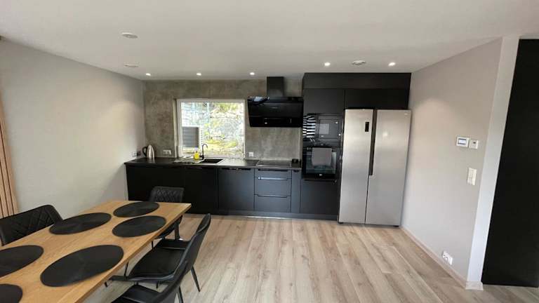 Die Ferienwohnung umfasst zwei Schlafzimmer, ein Wohnzimmer und eine voll ausgestattete Küche mit Kühlschrank und Wasserkocher. Das Badezimmer verfügt über eine Dusche und einen Haartrockner. Handtücher und Bettwäsche werden ebenfalls bereitgestellt.