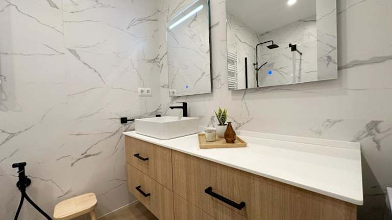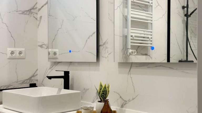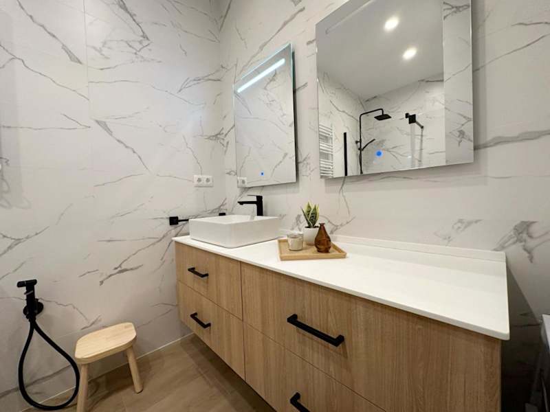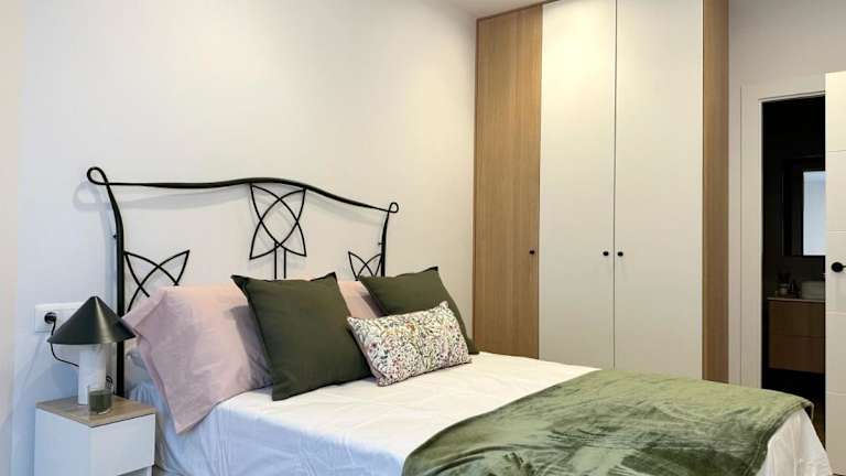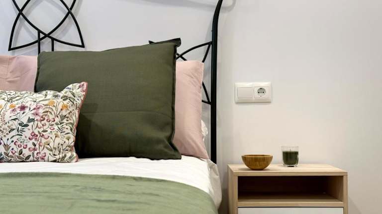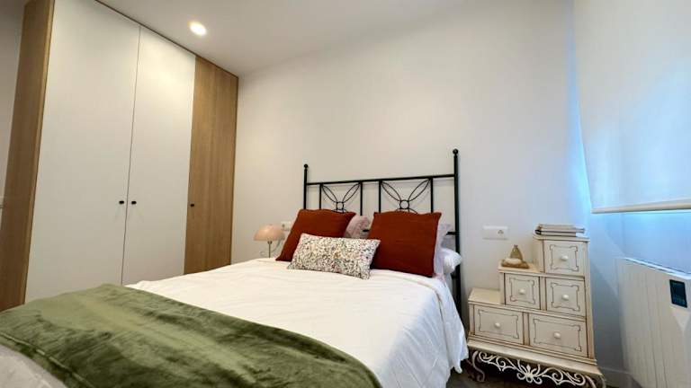 Die Ferienwohnung umfasst zwei Schlafzimmer, ein Wohnzimmer und eine vollständig ausgestattete Küchenzeile mit Kühlschrank und Kaffeemaschine. Das Badezimmer ist mit einem Bidet und einer Dusche ausgestattet. Handtücher und Bettwäsche werden bereitgestellt.
