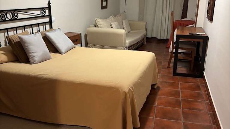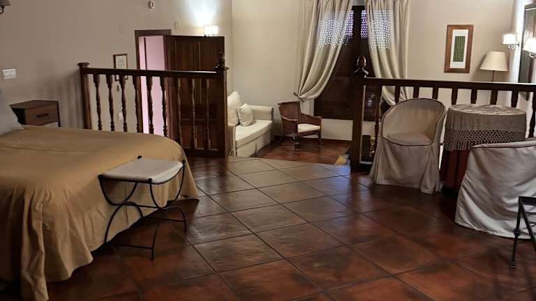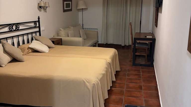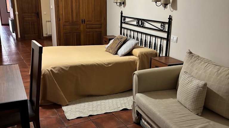Die gemütlichen Zimmer im Hotel El Castrejon sind im Landhausstil eingerichtet und beeindrucken mit reizvollen Details wie Holzbalken und Jagdtrophäen an den Wänden. Die sorgfältig ausgewählte Dekoration unterstreicht die originalen Elemente des Gebäudes und schafft eine warme und einladende Atmosphäre. Die Zimmer sind mit allem ausgestattet, was Sie für einen komfortablen Aufenthalt benötigen, und bieten Ihnen ein Zuhause fernab von Zuhause.