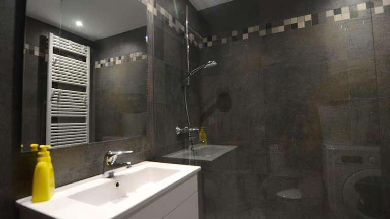 Die Ferienwohnung besteht aus zwei Schlafzimmern, einem Wohnzimmer sowie einer voll ausgestatteten Küche, die mit einem Kühlschrank und einer Kaffeemaschine ausgestattet ist. Des Weiteren gibt es ein Badezimmer mit einer Dusche und einen Fernseher. Handtücher sind nicht im Preis inbegriffen; diese können gemietet oder selbst mitgebracht werden.