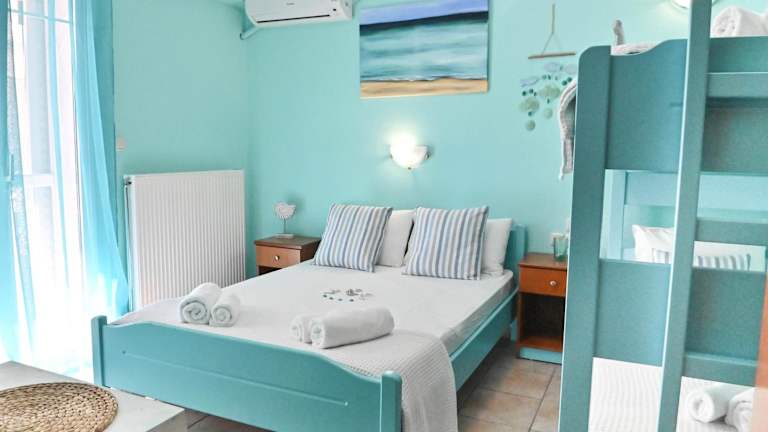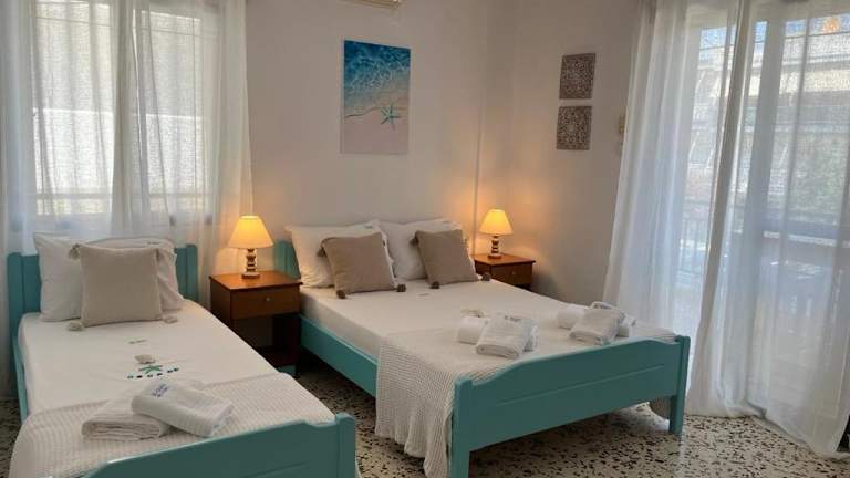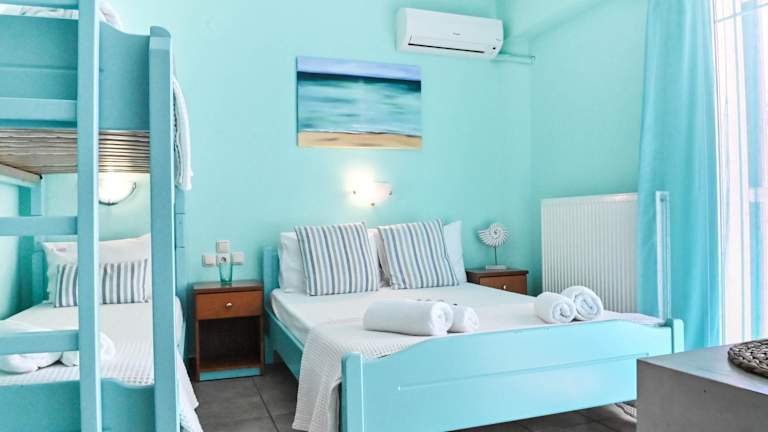 El Greco Nei Pori bietet kostenloses WLAN, kostenlose Fahrräder, einen Garten sowie eine Gemeinschaftslounge. Die Unterkunft verfügt über klimatisierte Wohneinheiten mit Fliesenböden.