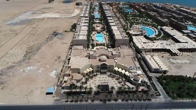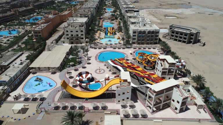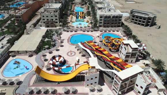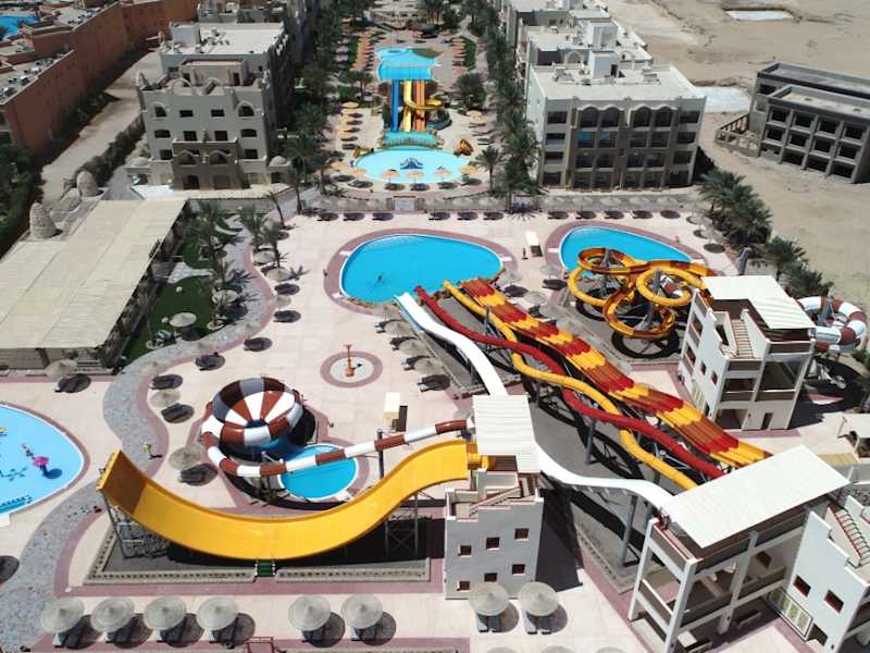 Das El Karma Aqua Beach Resort Hurghada wurde 2013 erbaut und verfügt über insgesamt 401 Zimmer. Das Resort ist die richtige Wahl für Besucher, die eine Kombination aus Charme, Ruhe und einer günstigen Lage suchen, um die Schönheit des Roten Meeres mit seinem azurblauen Wasser und den farbenfrohen Korallen zu erkunde. Mit einem Privatstrand und 9 Swimmingpools. Unsere Teammitglieder bieten einen aufmerksamen, persönlichen Service und stehen unseren geschätzten Gästen mit einer 24-Stunden-Rezeption jederzeit mit Rat und Tat zur Seite. Das Anwesen besteht aus 97 Standardzimmern, 256 Zimmern mit Blick auf den Pool, 46 Familienzimmern und 2 Suiten mit drei Schlafzimmern. Dieses beliebte Resort ist sowohl für Geschäftsreisende als auch für Urlauber ideal. Alle Zimmer sind mit Klimaanlage, LCD-TV, Direktwahltelefon, Balkon oder Terrasse, Minibar, Safe sowie Tee- und Kaffeezubereiter ausgestattet. In der Lobby gibt es einen Geldwechselautomaten. Das El Karma Aqua Beach Resort in Hurghada bietet eine große Auswahl an Speisen und Getränken. Das Panorama-Restaurant ist geöffnet zum Frühstück, Mittag- und Abendessen vom Buffet sowie mediterrane Küche. Die A-la-Cart-Restaurants sind zum Abendessen geöffnet. Wir bieten Ihnen chinesische und italienische Küche sowie unser Fischrestaurant. Das Resort hat vier Bars und einen Diskothek. Der am Strand gelegene Aquapark ist einer der besten Parks am Roten Meer und bietet mit 18 verschiedenen Rutschen eine Vielzahl an Unterhaltungsmöglichkeiten. Unser SPA- und Beauty-Salon hat eine Vielzahl von Dienstleistungen zur Verbesserung von Gesundheit, Schönheit und Entspannung durch Körperpflegebehandlungen. Das Resort verfügt über einen Fitnessraum, eine Einkaufspassage, eine Klinik, einen Kinderclub und ein Amphitheater.