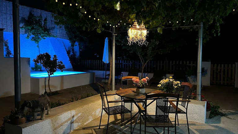 Das Ferienhaus beinhaltet zwei Schlafzimmer, ein Badezimmer, Bettwäsche und Handtücher. Zur Ausstattung gehören ein Flachbild-TV, ein Essbereich sowie eine voll ausgestattete Küche. Eine Terrasse mit Stadtblick ergänzt die Räumlichkeiten.