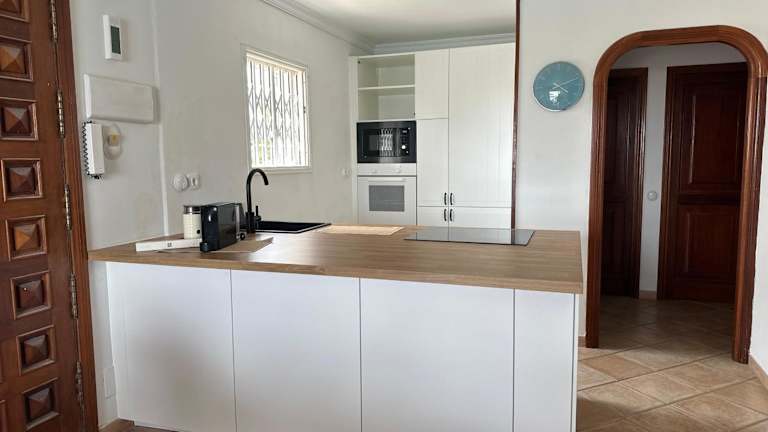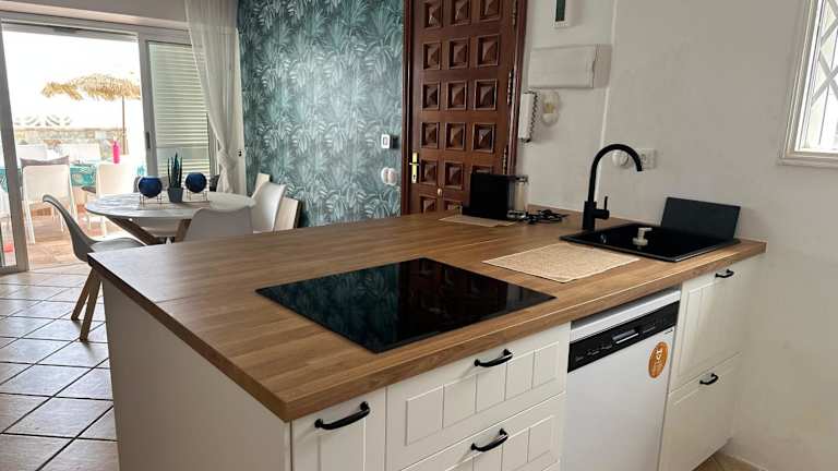 Das Ferienhaus in El Mar bietet zwei Schlafzimmer, ein Wohnzimmer und eine voll ausgestattete Küche mit Kühlschrank und Kaffeemaschine. Es gibt ein Bad mit Bidet und Dusche. Handtücher und Bettwäsche sind in der Unterkunft vorhanden. Die Terrasse ermöglicht einen Blick auf den Pool.