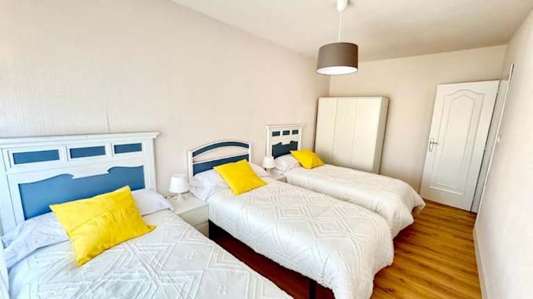 Die Ferienwohnung verfügt über 3 Schlafzimmer, ein Wohnzimmer sowie eine Terrasse mit Stadtblick. Die Unterkunft ist mit einem Flachbild-TV, einer gut ausgestatteten Küche mit Kühlschrank und Ofen sowie einem Badezimmer mit Dusche ausgestattet. Handtücher und Bettwäsche werden bereitgestellt.