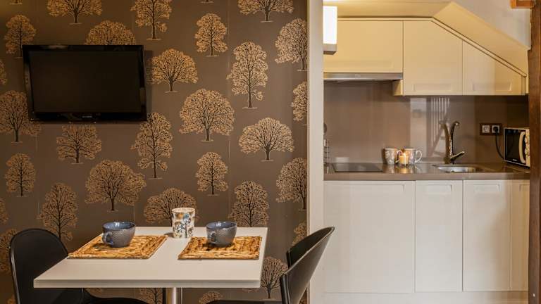 Die Ferienwohnung besteht aus einem Schlafzimmer, einem Wohnzimmer und einer voll ausgestatteten Küche, die mit einem Kühlschrank und einer Kaffeemaschine versehen ist. Zudem steht ein Badezimmer mit einer Dusche und kostenlosen Pflegeprodukten zur Verfügung. Handtücher und Bettwäsche werden bereitgestellt.