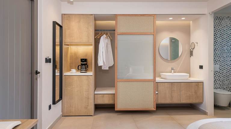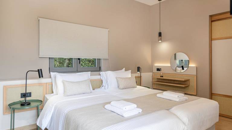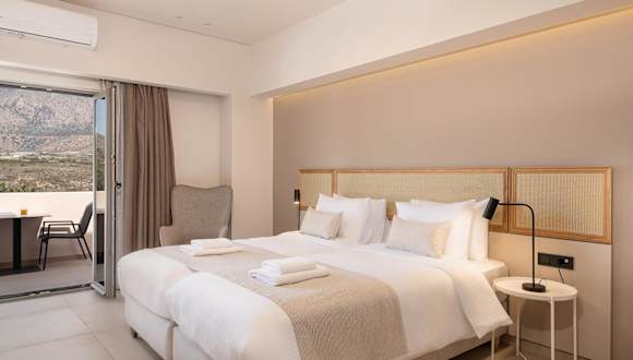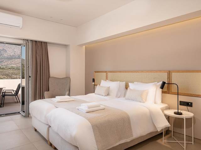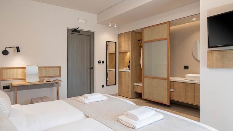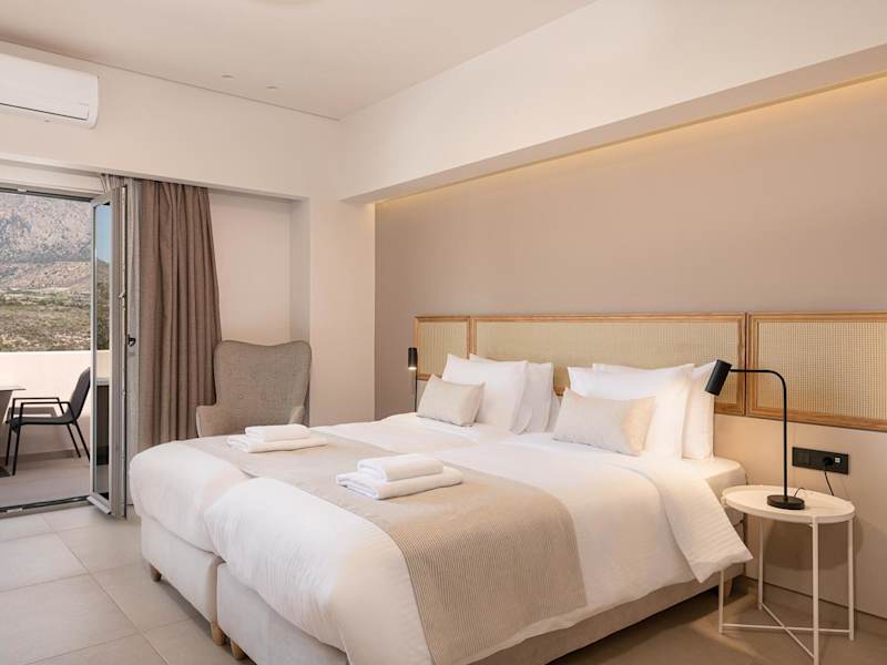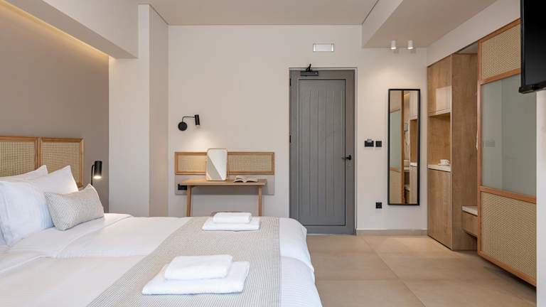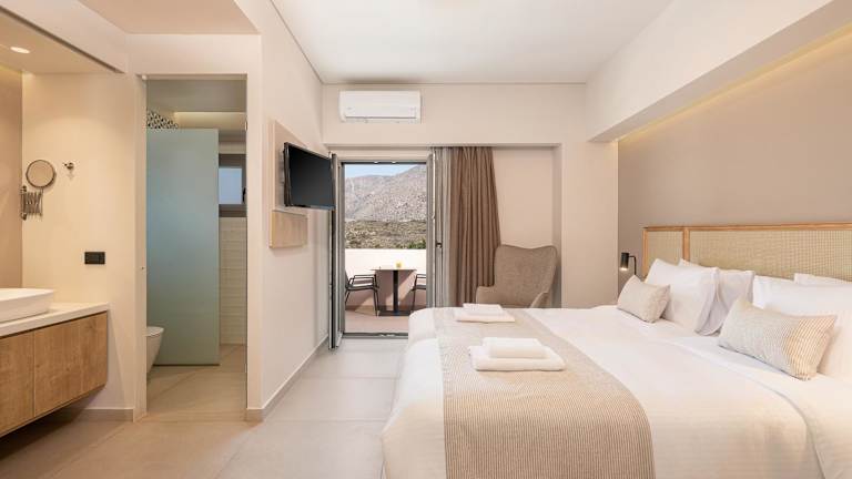 Die Zimmer im Elafonisi Resort by Kalomirakis Family sind schlicht und komfortabel eingerichtet und verfügen über einen möblierten Balkon, einen Kühlschrank und einen Schreibtisch. Einige Zimmer bieten auch eine Küchenzeile und Aussicht auf das Libysche Meer. Das eigene Bad ist mit einer Dusche, einem Haartrockner und kostenlosen Pflegeprodukten ausgestattet.