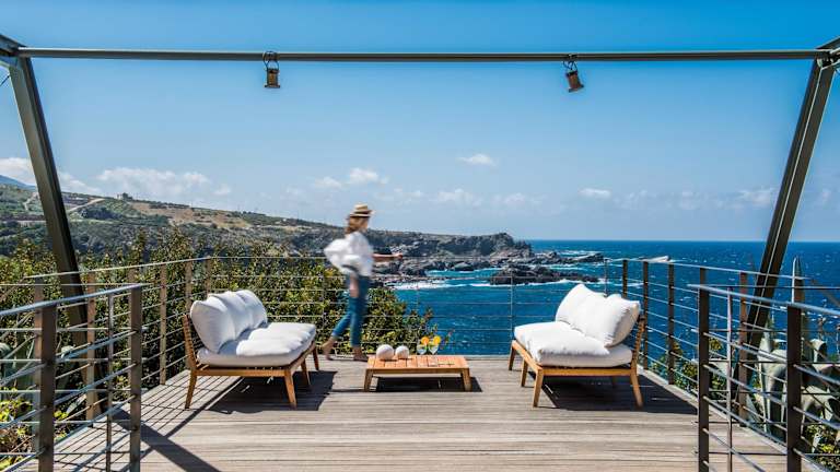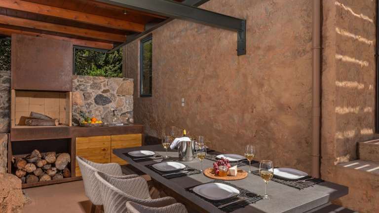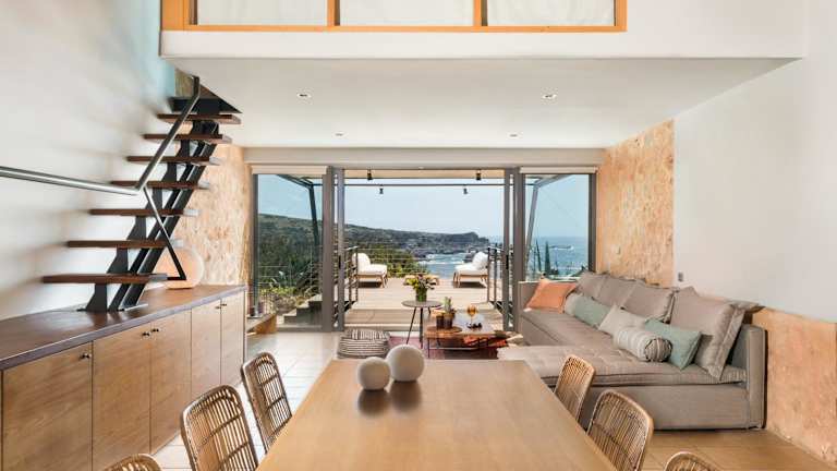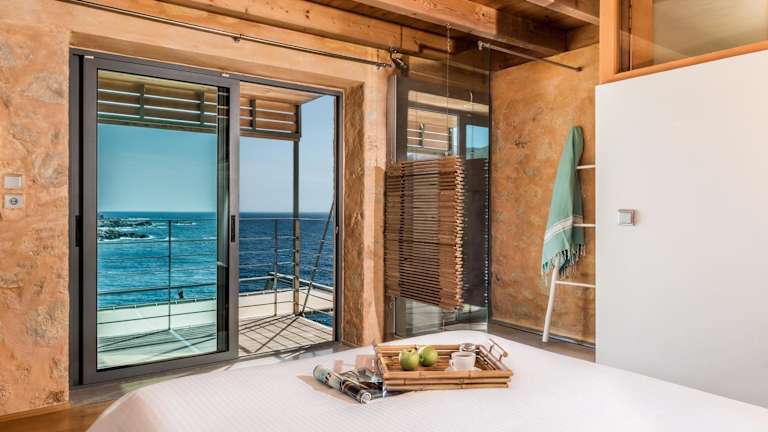 Die Villen der Elafonisi Villas sind aus Stein gebaut und in erdigen Tönen dekoriert. Jede Villa verfügt über eine möblierte Terrasse und einen Balkon, auf denen Sie entspannen und den Blick auf das Meer genießen können. Die klimatisierten Villen bieten eine moderne, voll ausgestattete Küche und einen gemütlichen Essbereich. Das Wohnzimmer ist mit einem bequemen Sofa und einem Flachbild-Sat-TV mit DVD-Player ausgestattet. Je nach Größe der Villa stehen Ihnen 3 oder 4 Badezimmer zur Verfügung, die mit kostenlosen Pflegeprodukten ausgestattet sind.