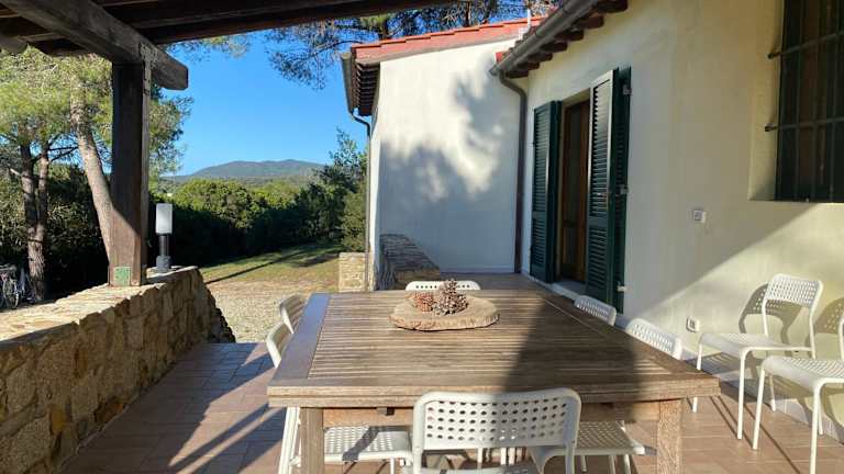 Elba Villa Colle - Nel verde ma vicina al mare bietet eine Villa mit einem Garten und einer Terrasse, die eine angenehme Atmosphäre schafft und sich in einer grünen Umgebung befindet.