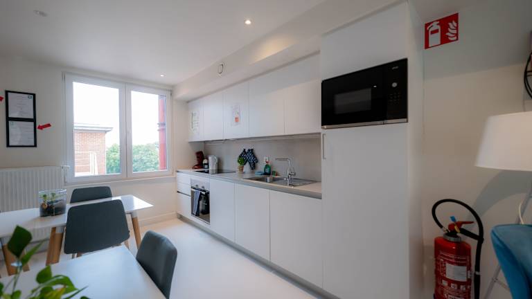 Das Hotel bietet eine Gemeinschaftsküche, in der die Gäste ihre eigenen Mahlzeiten zubereiten können. Es gibt auch eine Gemeinschaftslounge, in der Sie sich mit anderen Gästen treffen und entspannen können. In der Umgebung finden Sie auch eine Vielzahl von Restaurants und Cafés, in denen Sie lokale und internationale Küche genießen können.