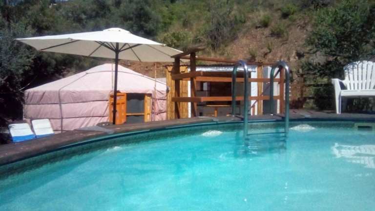 Eldorado Yurt ist eine Zelt-Lodge, die einen eigenen Pool und einen Garten bietet. Die Unterkunft verfügt über eine Veranda oder Terrasse mit Poolblick. Diese Lodge eignet sich für Gäste, die eine naturnahe Erfahrung in einem besonderen Wohnkonzept suchen.