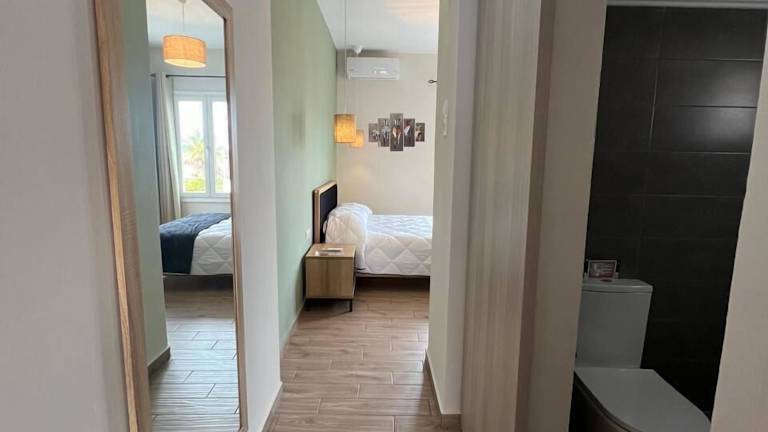 Jede Wohneinheit verfügt über ein eigenes Badezimmer mit Dusche, Klimaanlage, Flachbild-TV und Kühlschrank.