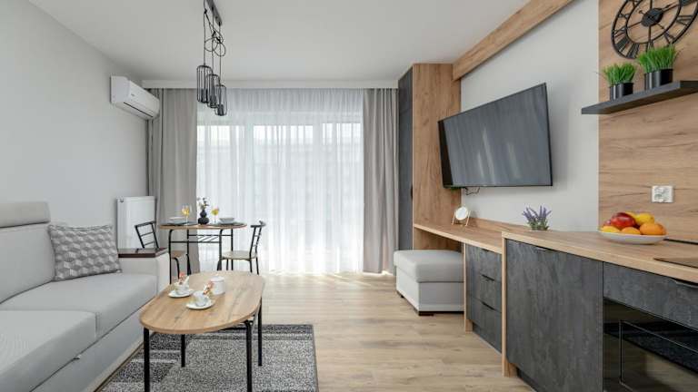 Eleganckie Studio Basen, Fitness & Balkon by Noclegi Renters bietet klimatisierte Übernachtungsmöglichkeiten und eine angenehme Ausstattung mit einer Terrasse und einem Außenpool. Die Rezeption ist rund um die Uhr besetzt, was den Gästen zusätzlichen Komfort bietet.