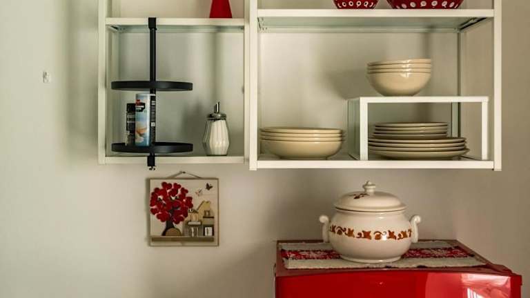Die Ferienwohnung enthält eine voll ausgestattete Küche mit einem Kühlschrank und einer Kaffeemaschine. Es sind keine weiteren Verpflegungsmöglichkeiten angegeben.