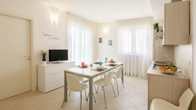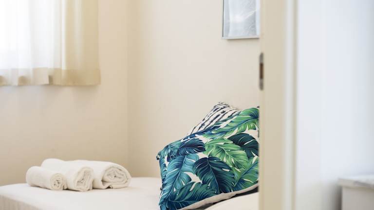 Die Ferienwohnung umfasst zwei Schlafzimmer, ein Wohnzimmer sowie eine voll ausgestattete Küche mit Kühlschrank und Wasserkocher. Ein Badezimmer mit Bidet und Dusche ist ebenfalls vorhanden. Klimaanlage sorgt für zusätzlichen Komfort. Handtücher und Bettwäsche können gegen Aufpreis bereitgestellt werden.