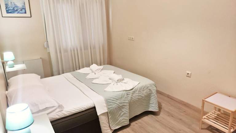 Die Ferienwohnung besteht aus zwei Schlafzimmern, einem Wohnzimmer und einer vollständig ausgestatteten Küche, die mit Kühlschrank und Wasserkocher ausgestattet ist. Das Badezimmer verfügt über eine Dusche und kostenlose Pflegeprodukte. Handtücher und Bettwäsche werden bereitgestellt.