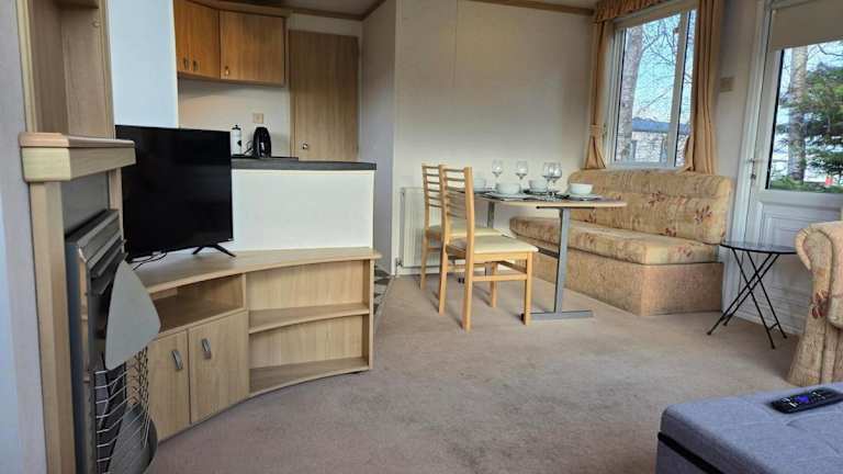 Die Lodge umfasst ein Schlafzimmer und eine Küche, die mit einem Kühlschrank und einem Ofen ausgestattet ist. Zudem gibt es einen Flachbild-TV, einen Sitzbereich und ein Badezimmer mit Dusche.
