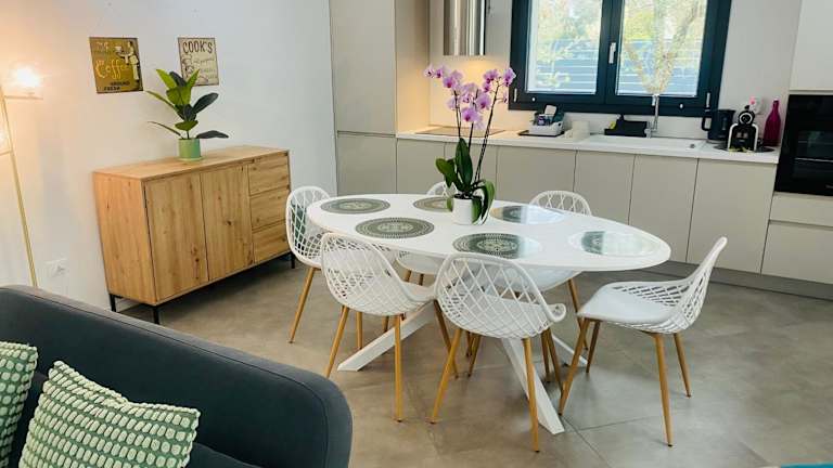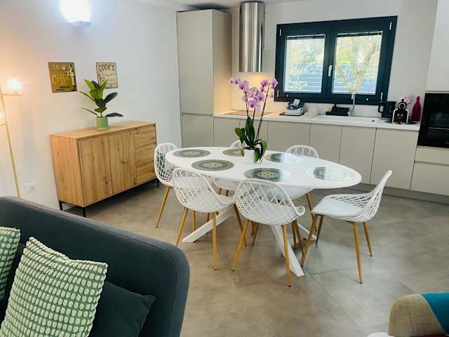 Die Ferienwohnung besteht aus zwei Schlafzimmern, einem Wohnzimmer und einer voll ausgestatteten Küche, die mit einem Kühlschrank und einer Kaffeemaschine ausgestattet ist. Außerdem verfügt die Unterkunft über ein Badezimmer mit Bidet und Dusche. Handtücher und Bettwäsche werden zur Verfügung gestellt.