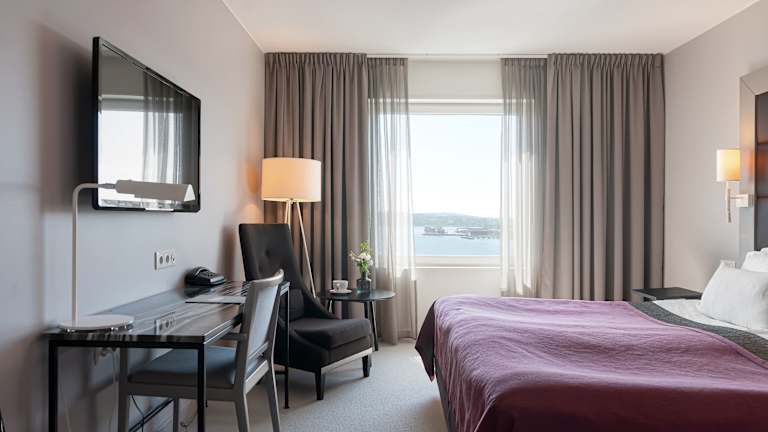 Die Zimmer im Elite Plaza Örnsköldsvik sind modern und komfortabel eingerichtet. Sie verfügen über Parkettboden, Flachbild-Kabel-TV und kostenfreies WLAN. Einige Zimmer bieten zudem eine Minibar und einen herrlichen Blick auf den Hafen.