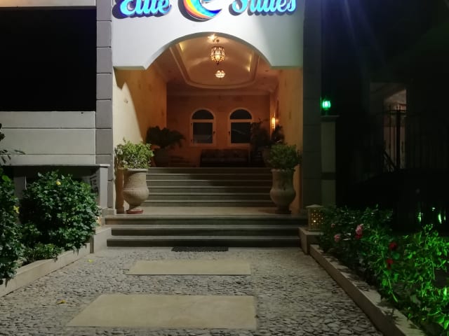 Das Elite Suites Hurghada ist eine ideale Unterkunft für Ihren Aufenthalt in Hurghada. Das Hotel bietet komfortable Apartments mit gut ausgestatteten Küchen, separaten Sitzecken und kostenfreiem WLAN. Entspannen Sie am Innenpool oder genießen Sie den Blick von der Terrasse oder dem Garten. Das Hotel bietet auch einen Flughafentransfer und kostenlose Parkplätze in der Nähe.