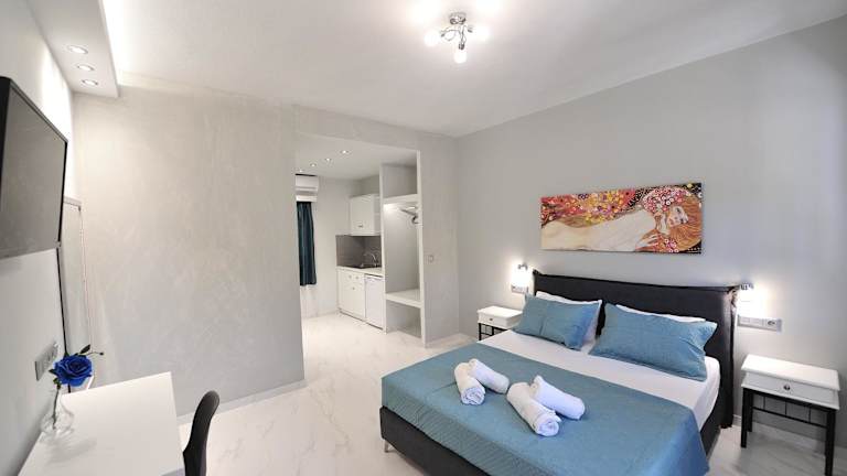 Die klimatisierten Studios der Elizabeth Studios bieten einen Balkon mit Blick auf den Garten. Die Zimmer sind komfortabel eingerichtet und verfügen über einen Flachbild-TV sowie ein eigenes Badezimmer mit einer Dusche und kostenlosen Pflegeprodukten. Zur Ausstattung gehören auch ein Kühlschrank, eine Kaffeemaschine und ein Wasserkocher, so dass Sie sich selbst versorgen können. WLAN ist in allen Bereichen des Hotels kostenlos verfügbar und private Parkplätze stehen ebenfalls kostenfrei zur Verfügung.